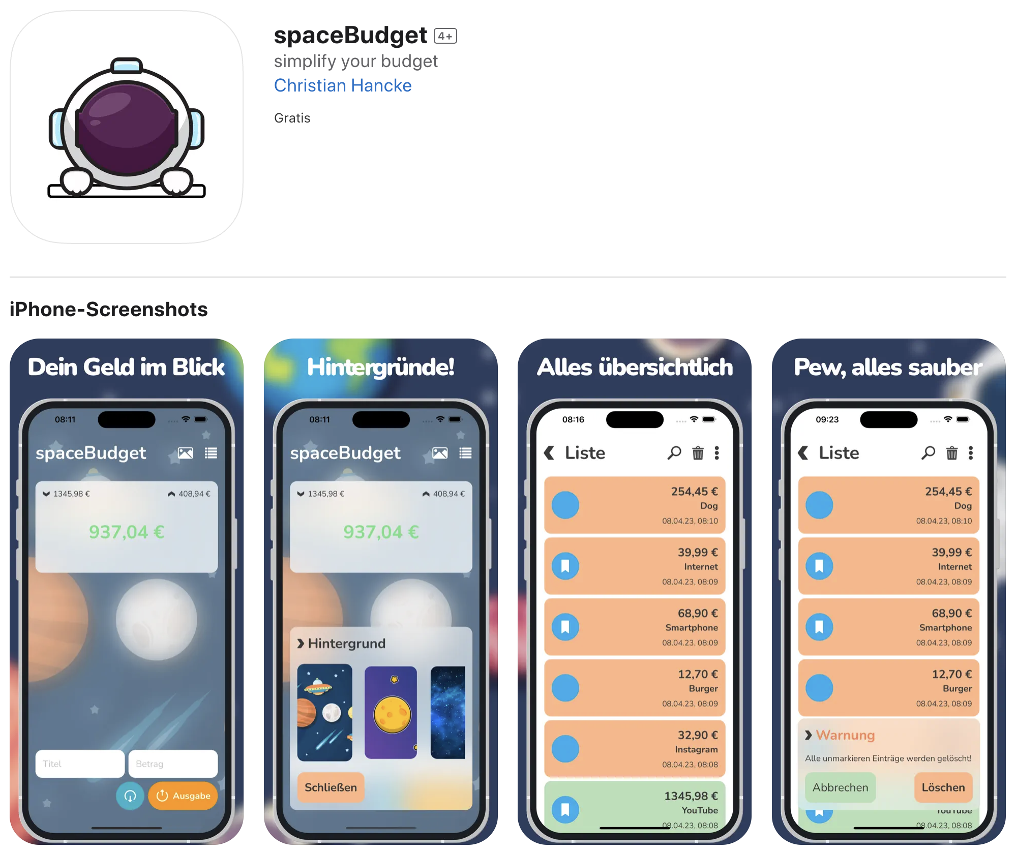 spaceBudget bietet dir die einfachste Möglichkeit deine Einnahmen und Ausgaben in